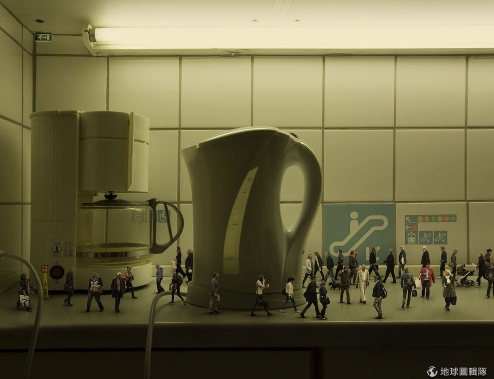 網友熱水壺旁來去匆匆的上班族等著搭大眾交通工具上班去。Photo credit: Manuel Archain