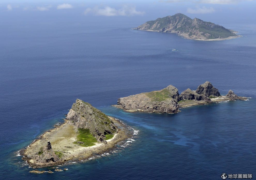 圖為東海上引起中日領土爭議的島嶼,位在兩座島嶼中間的就是釣魚台。