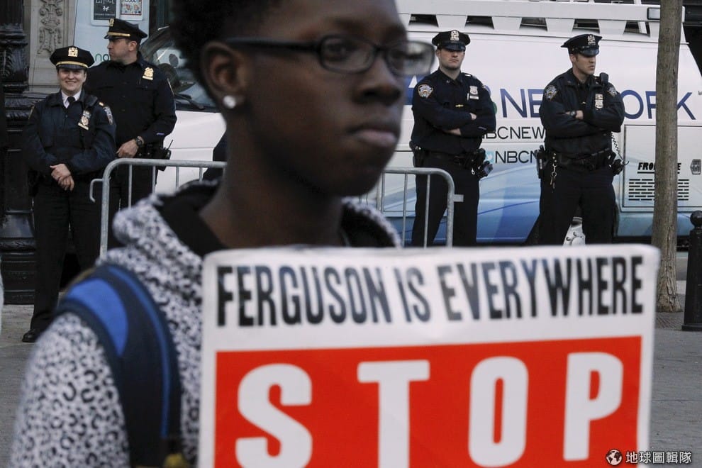 示威民眾舉著標語「佛格森事件到處都是」。