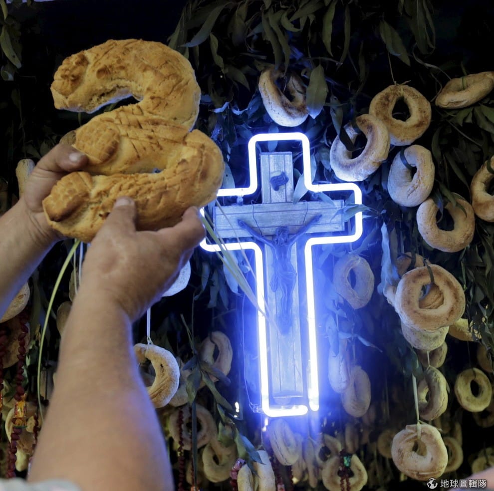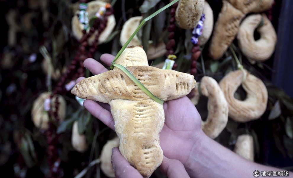 路透社做成十字架形狀的奇巴麵包。等十字架節結束後,這些麵包會發送給參加的親朋好友。