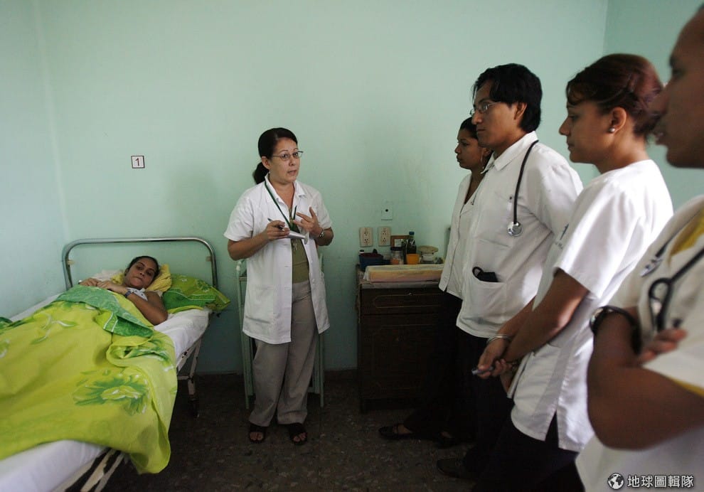 一名古巴醫生正在教導醫學生如何照顧病患。