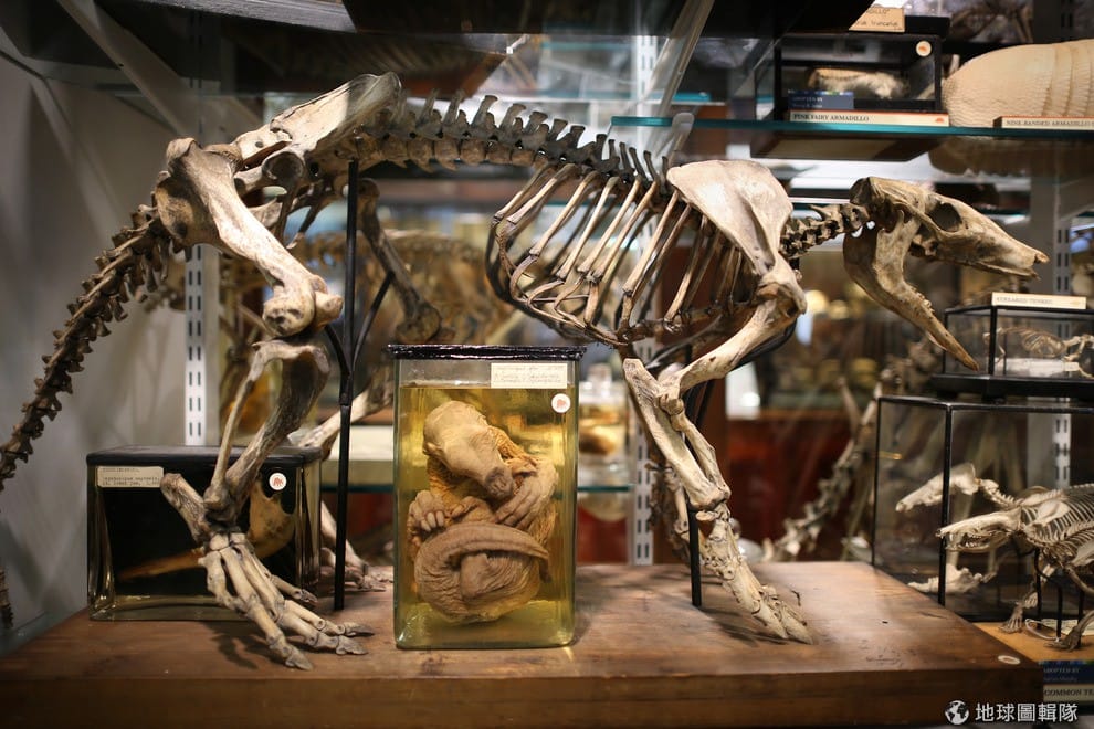 照片中央的動物是小「非洲食蟻獸」(aardvark),上方大型的骷髏就是成年版食蟻獸囉。Peter Macdiarmid/Getty Images