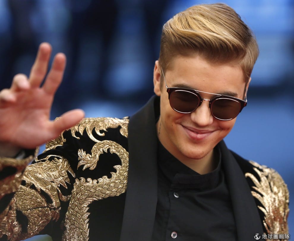 男星小賈斯汀當晚穿上繡有龍圖騰的黑色西裝參加晚會。