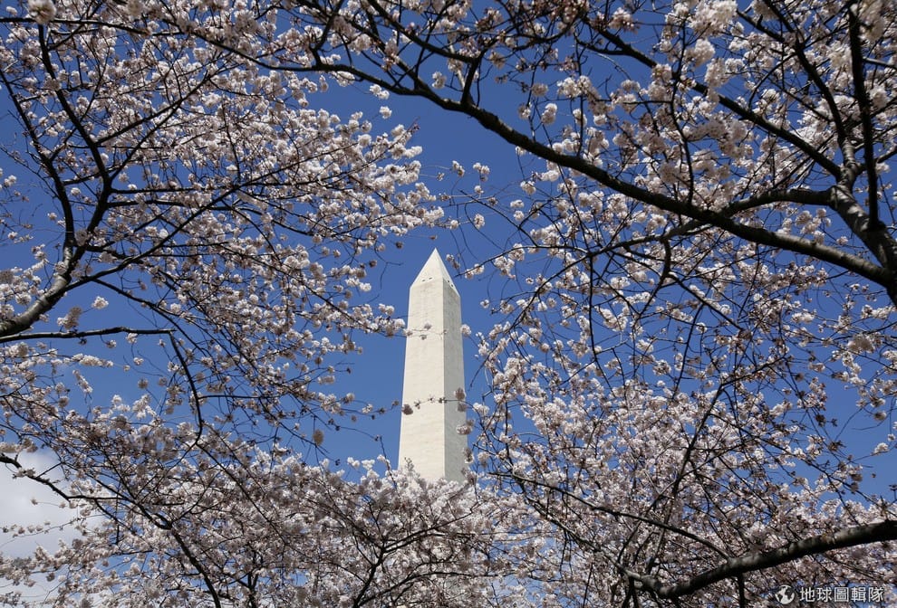 春天繁花似錦,不過,散播的花粉卻讓許多過敏患者苦不堪言。圖為美國華盛頓紀念碑,一旁的櫻花欣欣向榮。