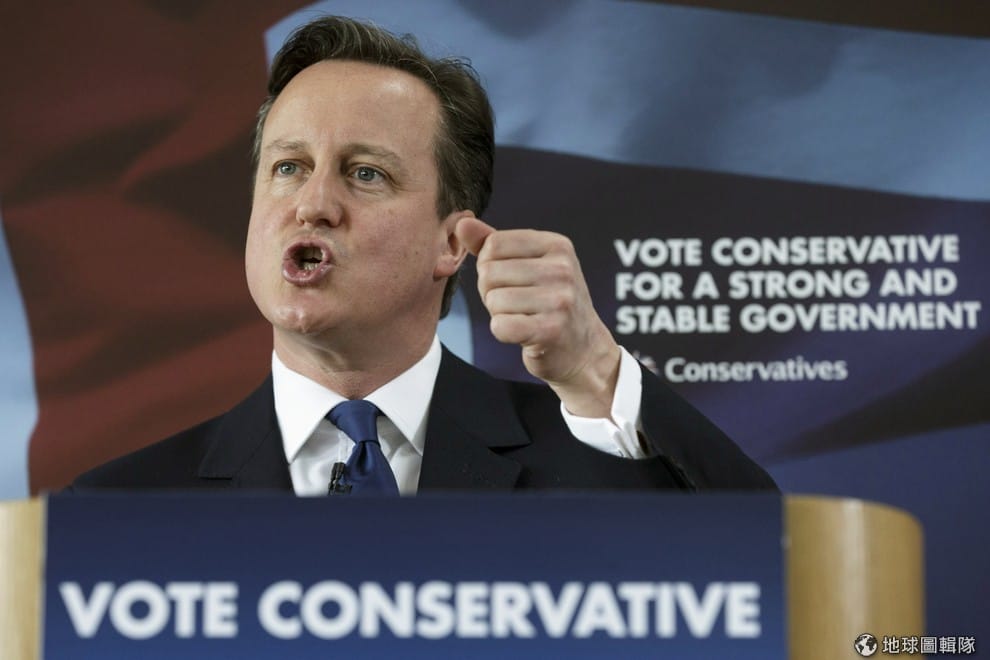 圖為英國現任首相卡麥隆,他帶領的保守黨確定成為國會多數黨。
