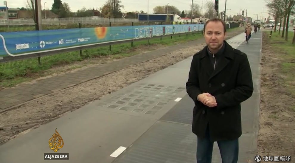 台灣的電力,有大部分來自火力發電,這樣的發電方式一方面得仰賴將可能耗盡的燃料,再來燃料產生的空氣汙染也是許多人擔憂的地方,這樣的煩惱其實是全球共有,近年來各國都專注在尋找乾淨且永續的發電方式,其中又以太陽能為相當重要的發展方向,根據《半島電台》報導, 2014年底時,荷蘭一群工程師表示他們把太陽能技術應用到路面上,設置了名叫「太陽能路」(Solaroad)的發明,現在這項技術不僅是研發成功,研發人員表示他們希望可以更進一步把設計推廣到全國甚是至全球。