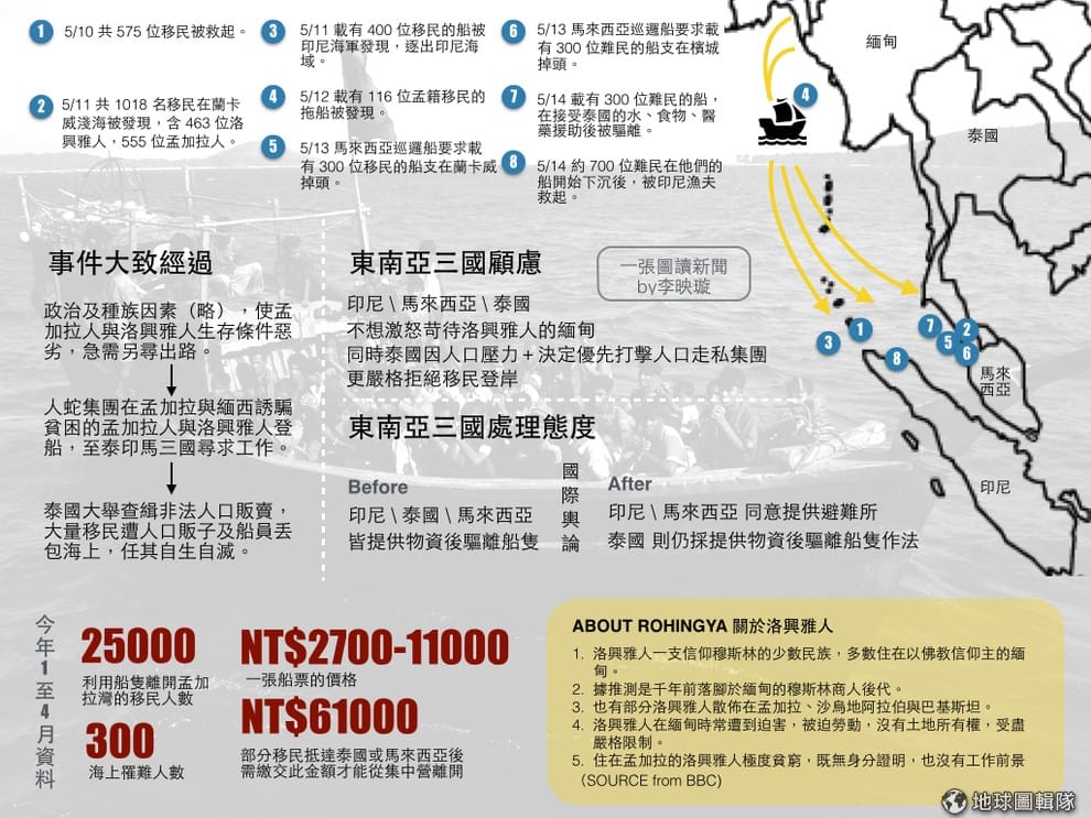 根據《衛報》提供資訊,5月開始,東南亞一帶因為移民船難問題掀起波瀾。Photo credit: 李映璇