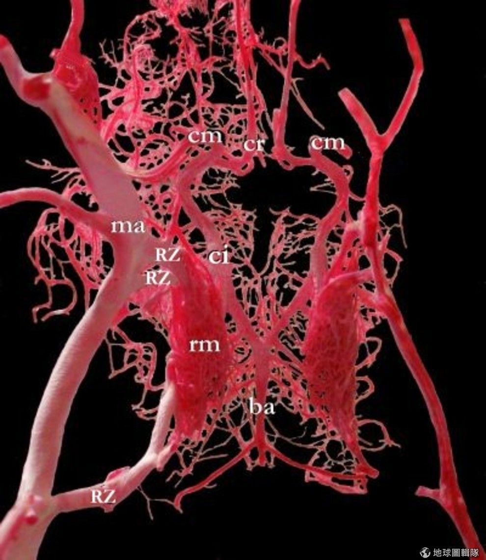 迷網是一個複雜的血管網路,在這個網路裡動脈跟靜脈靠得很近。Photo credit: Wikicommons