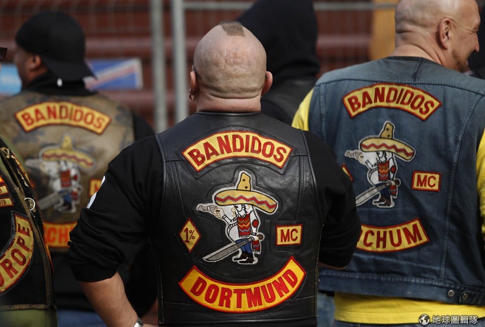 圖為這次涉案的班迪多幫,他們最大的特色就是背後墨西哥帽搭配手槍和大刀的人物圖樣,相當好認。