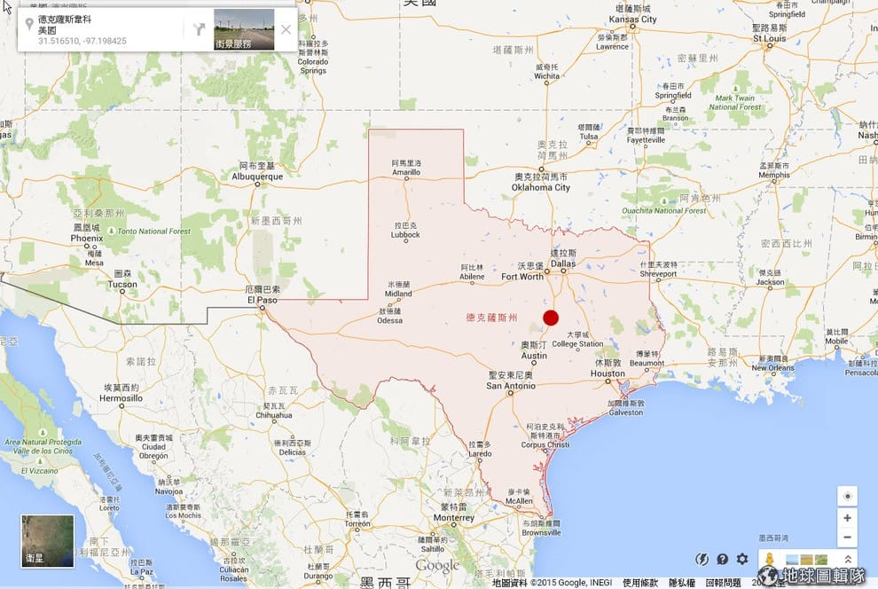 這次發生幫派嚴重鬥毆的地點位在德州中部的威果鎮(圖中紅點)。