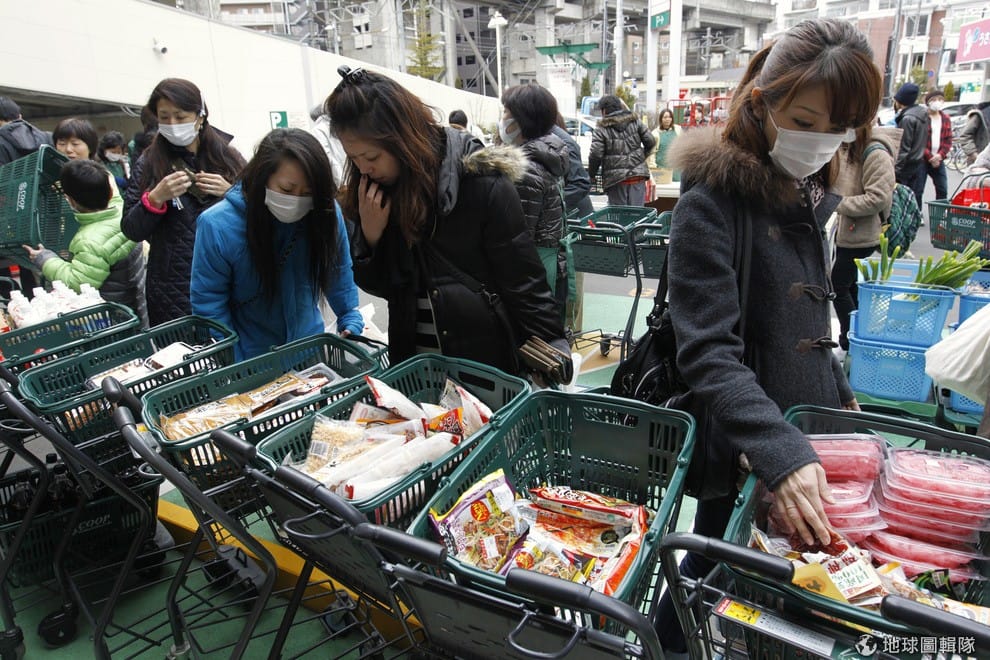 日本人在市場買東西。日本面臨了物價下跌的問題,物價下跌聽起來對消費者是件好事,不過這也表示人們會延後買東西的計畫。