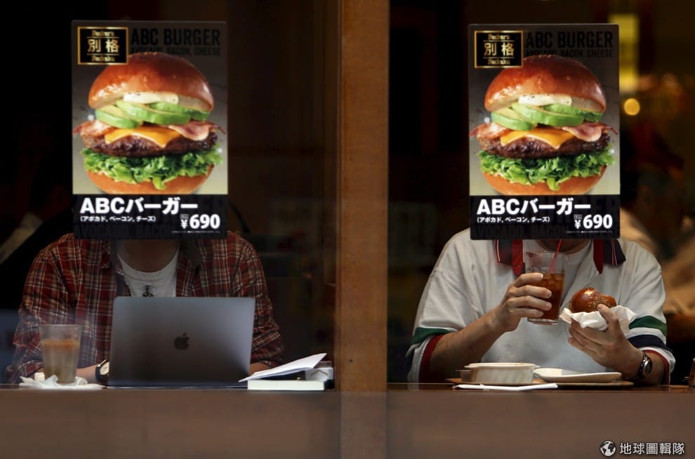 日本客人坐在速食餐廳裡吃東西。日本的經濟在今年 1-3月的成長速度比預期的還要快。