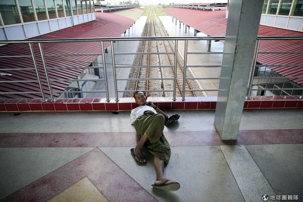 路透社幾乎看不見人影的奈比多火車站內,民眾在冰涼的地面上打盹。