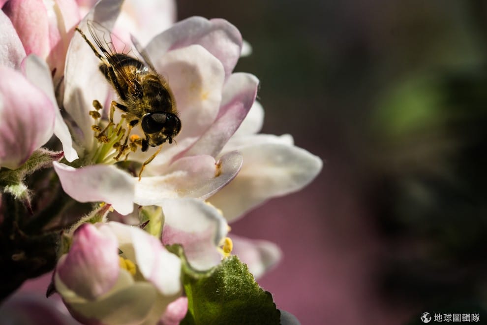 美麗的蘋果樹開花了,我們有多汁的蘋果要歸功於勤奮授粉的蜜蜂,如果少了牠們的幫忙,人類將會失去許多可口的瓜果,或是得以更高成本來購買食物。