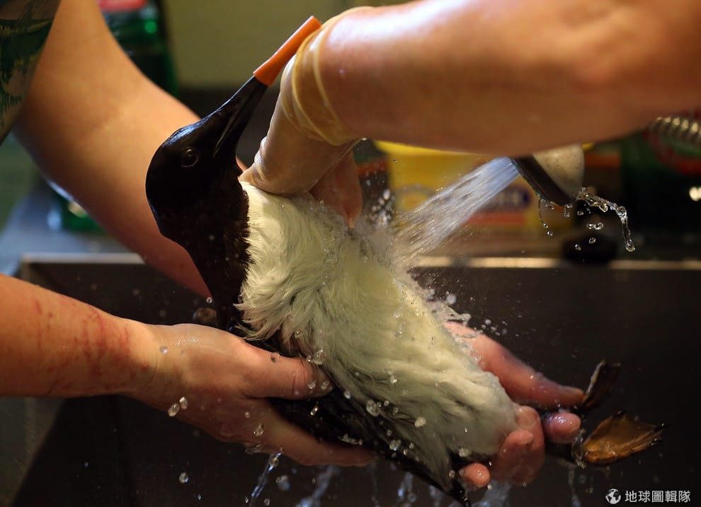 gettyimages工作人員盡可能地幫小鳥把身上的髒污都清掉。Matt Cardy/Getty Images