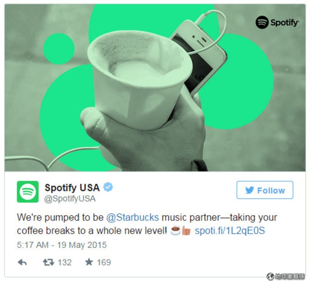 Spotify 在推特(Twitter)發布與星巴克合作的消息
