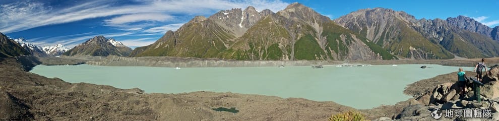 圖為紐西蘭的塔斯曼湖,這是塔斯曼冰川後退形成的冰堰湖。Photo credit: wikicommons
