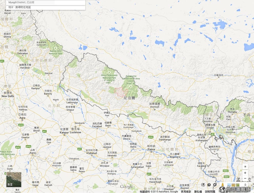 圖中紅色區塊就是發生堰塞湖現象的甘達基河所在的米亞格區(Myagdi District)。