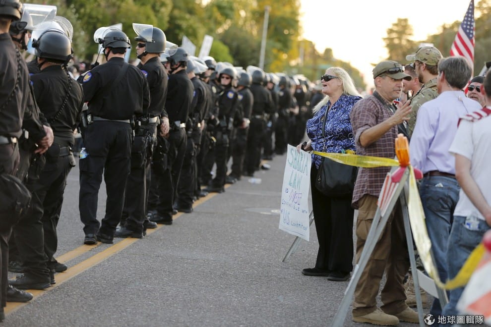 反穆斯林示威者展現的白人特權,對一個種族歧視和排外猖獗的州來說,是整場活動中最有力的部分。抗議活動不用靠語言,光是畫面就表達出訴求,但他們卻要求警方給予最高規格的保護。