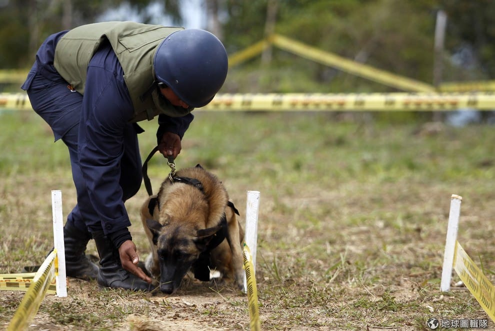 除了掃雷儀器,哥倫比亞也訓練狗狗來幫忙找出地雷。