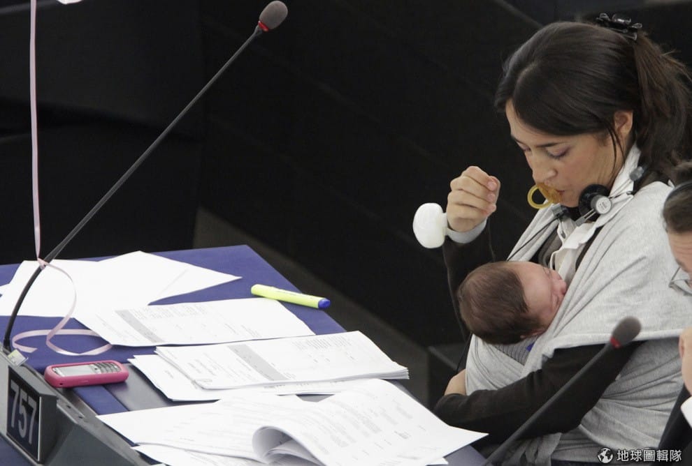義大利籍的美女議員莉西亞 (Licia Ronzulli)因為帶著寶貝女兒闖蕩歐洲議會聲名大噪。