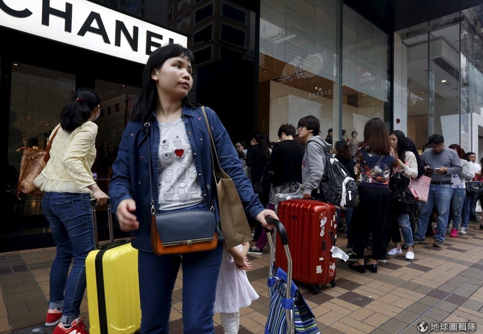 中國觀光客在公共場所惹人厭時有所聞,圖為中國觀光客在香港精品店前等著掃貨。