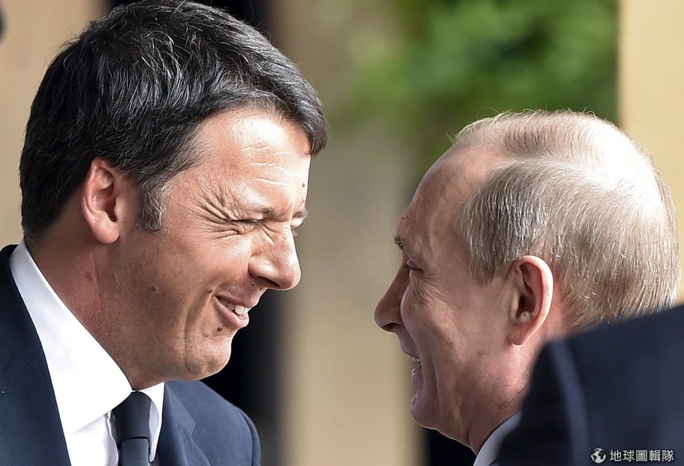 路透社俄國總統普亭雖然在歐洲不受歡迎,不過,義大利總理倫齊(圖左)依然熱情歡迎他。