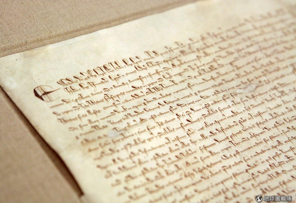 英國《大憲章》以拉丁文在羊皮紙上寫成,對民主的影響深遠。