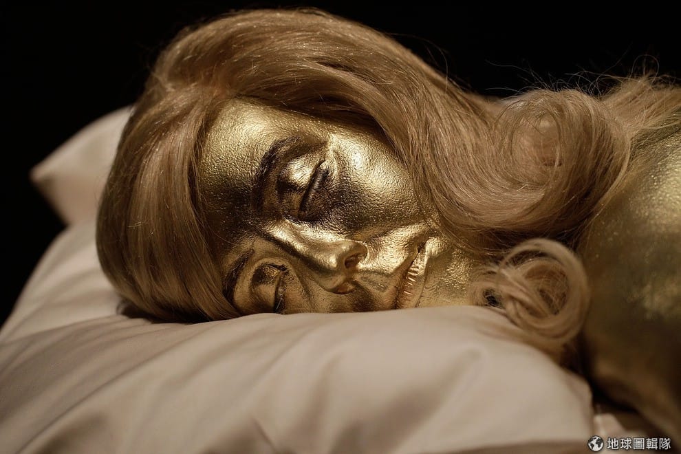 照片中是《金手指》其中一幕,龐德女郎吉兒(Jill Masterson)因為背叛敵方,最後被塗滿金色塗漆,造成皮膚無法呼吸窒息而死,這樣的死法是作者特意虛構在龐德電影中,也成為非常經典的一幕!Matthew Lloyd/Getty Images