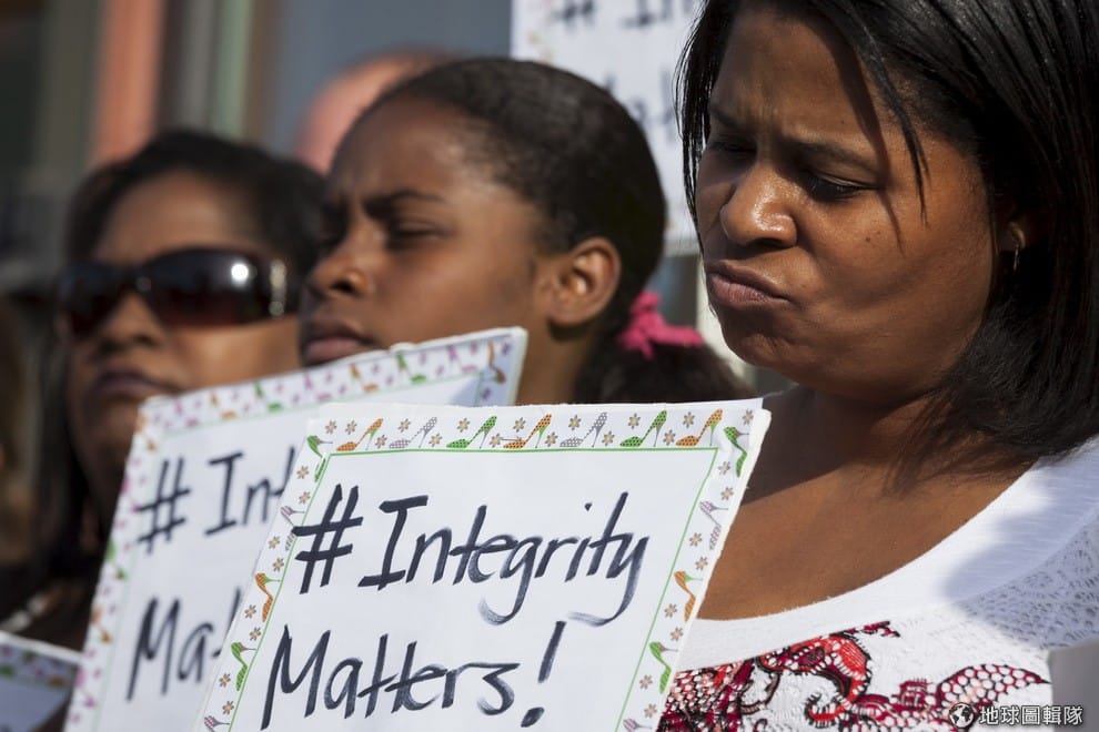 德蕾薩遭踢爆是白人後,黑人社群高舉寫著「誠實很重要」的牌子,表達對德蕾薩的不滿。