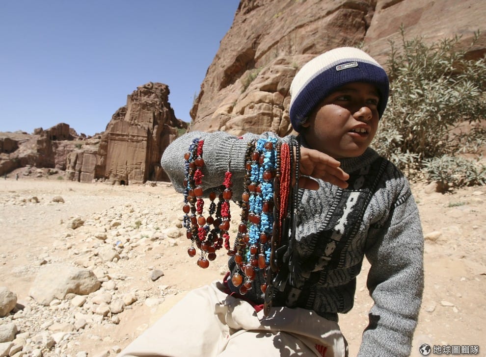 小朋友在約旦的觀光景點賣首飾,約旦當地有好幾萬人是靠著觀光業來賺錢的。