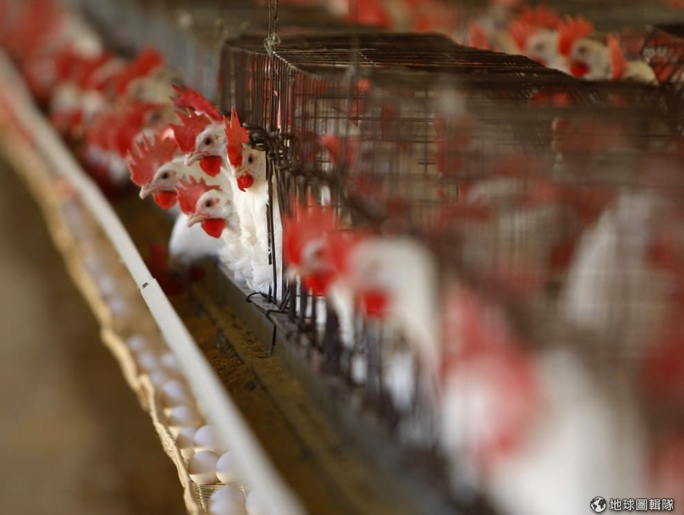 在美國的蛋雞場中,一隻隻蛋雞被養在狹小的鐵籠裡。