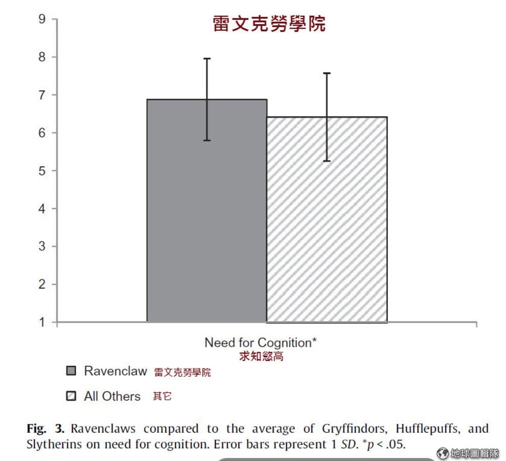 地球圖輯隊葛來芬多的學生在外向性上面較高於其它學院學生。