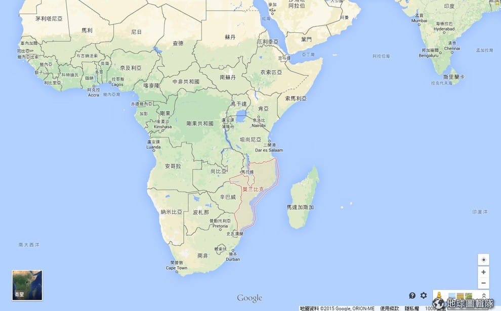非洲國家中,莫三比克是對同志相對友善的國家。上圖紅色區域是莫三比克的位置。