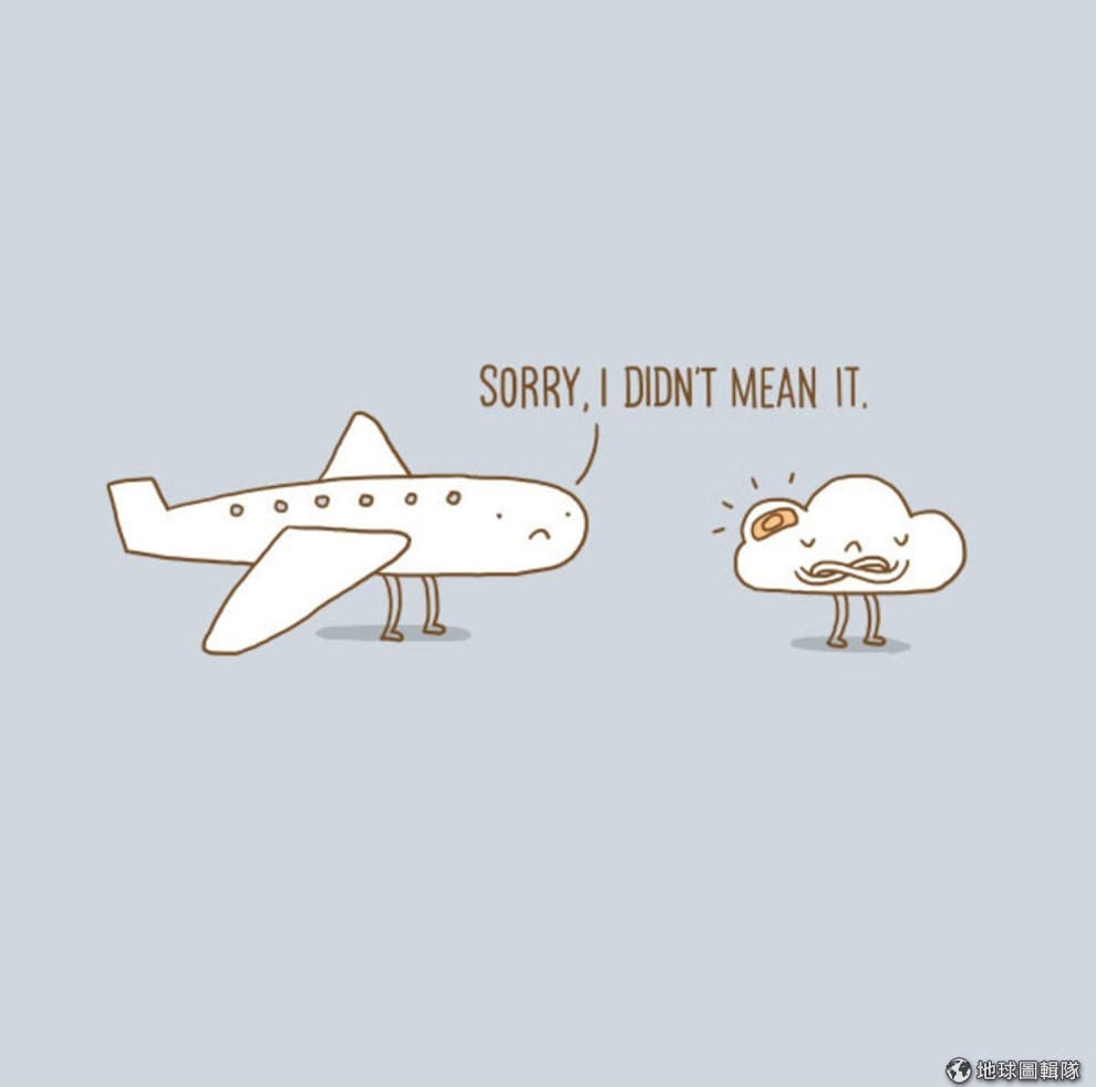 網友飛機對受了傷貼著OK繃的雲朵說:「抱歉,我不是故意的。(Sorry, I didn't mean it.)」Photo credit: 林行瑞