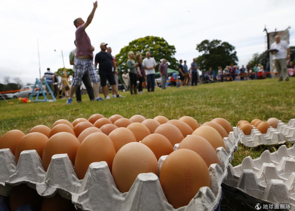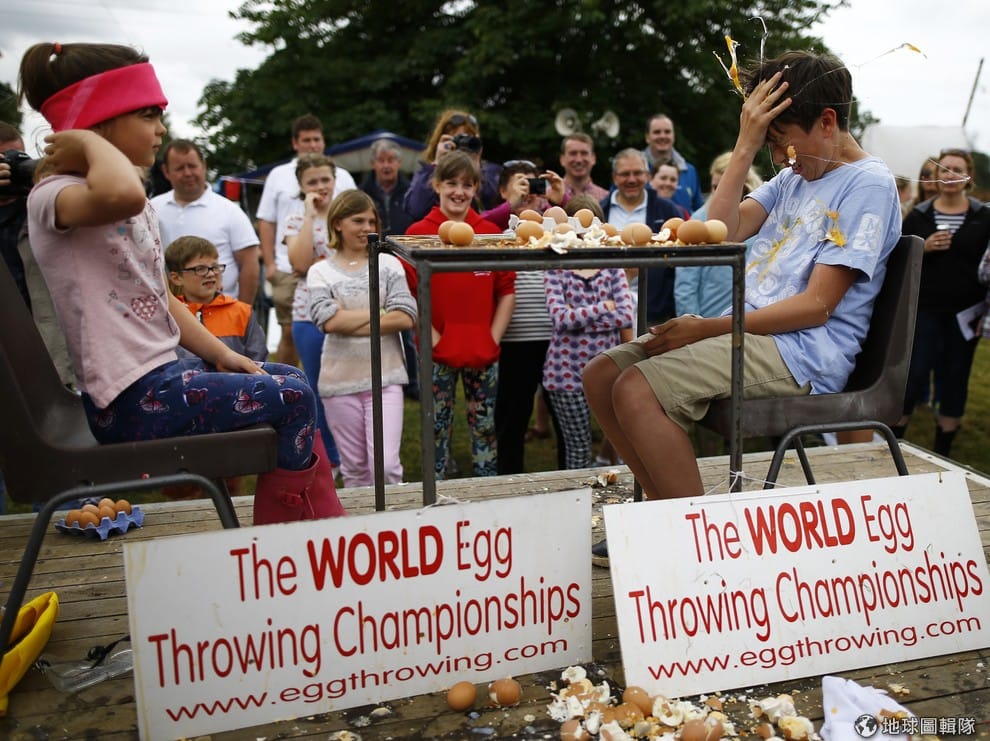 《路透社》、BBC綜合報導,英國在周日(6/28)再度舉辦知名的「世界丟雞蛋大賽」(World Egg Throwing Championships),地點就位在英格蘭的斯華頓(Swaton)村中,活動當天,你會發現觀賽民眾屏氣凝神一臉緊張,而場中央的參賽團隊則是一副小心翼翼的模樣,會這麼緊張是因為比賽隊員必須互相拋接雞蛋,而且要盡力保持雞蛋不破掉。