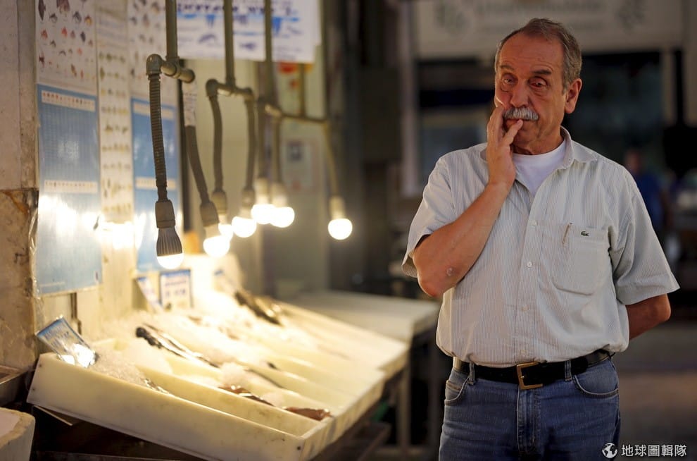 愁著臉等待客人上門的魚販。