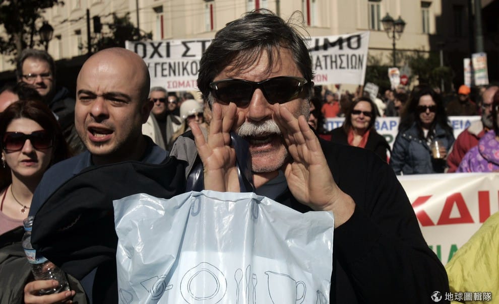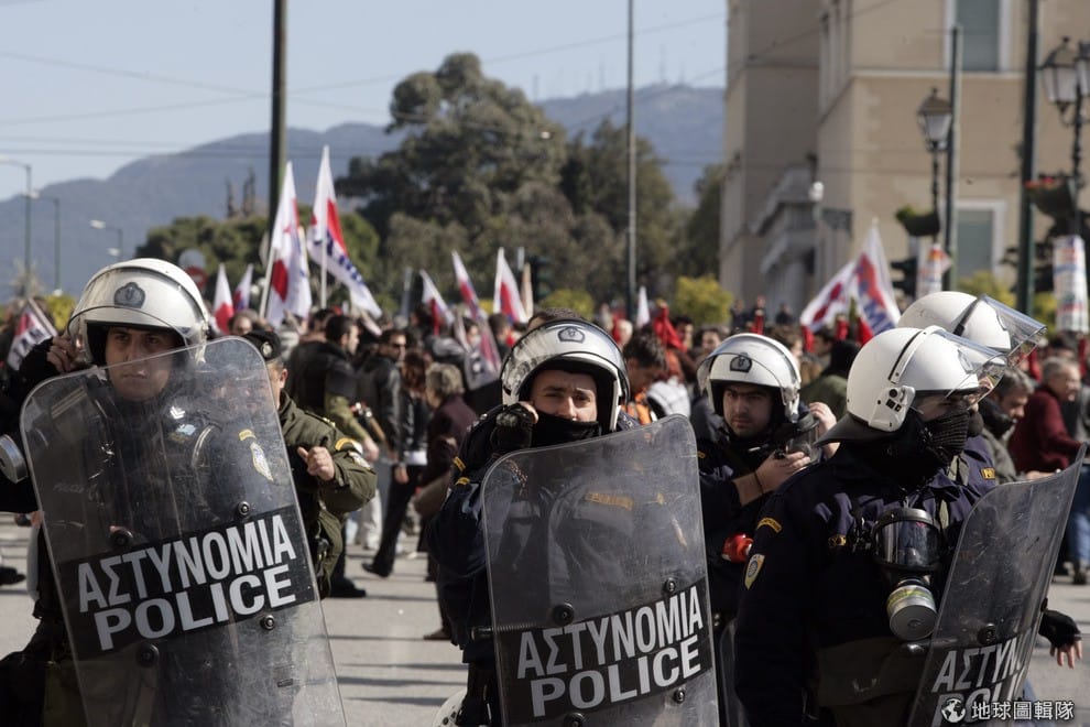 gettyimages周三(13)開始,希臘再度爆發大規模示威,上千位工人走上雅典街頭,抗議政府的決策讓他們日子難過!示威群眾鼓譟吹哨子、敲起大鼓表達不滿,抗議中也有數次警民間的小衝突發生。