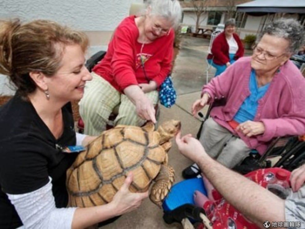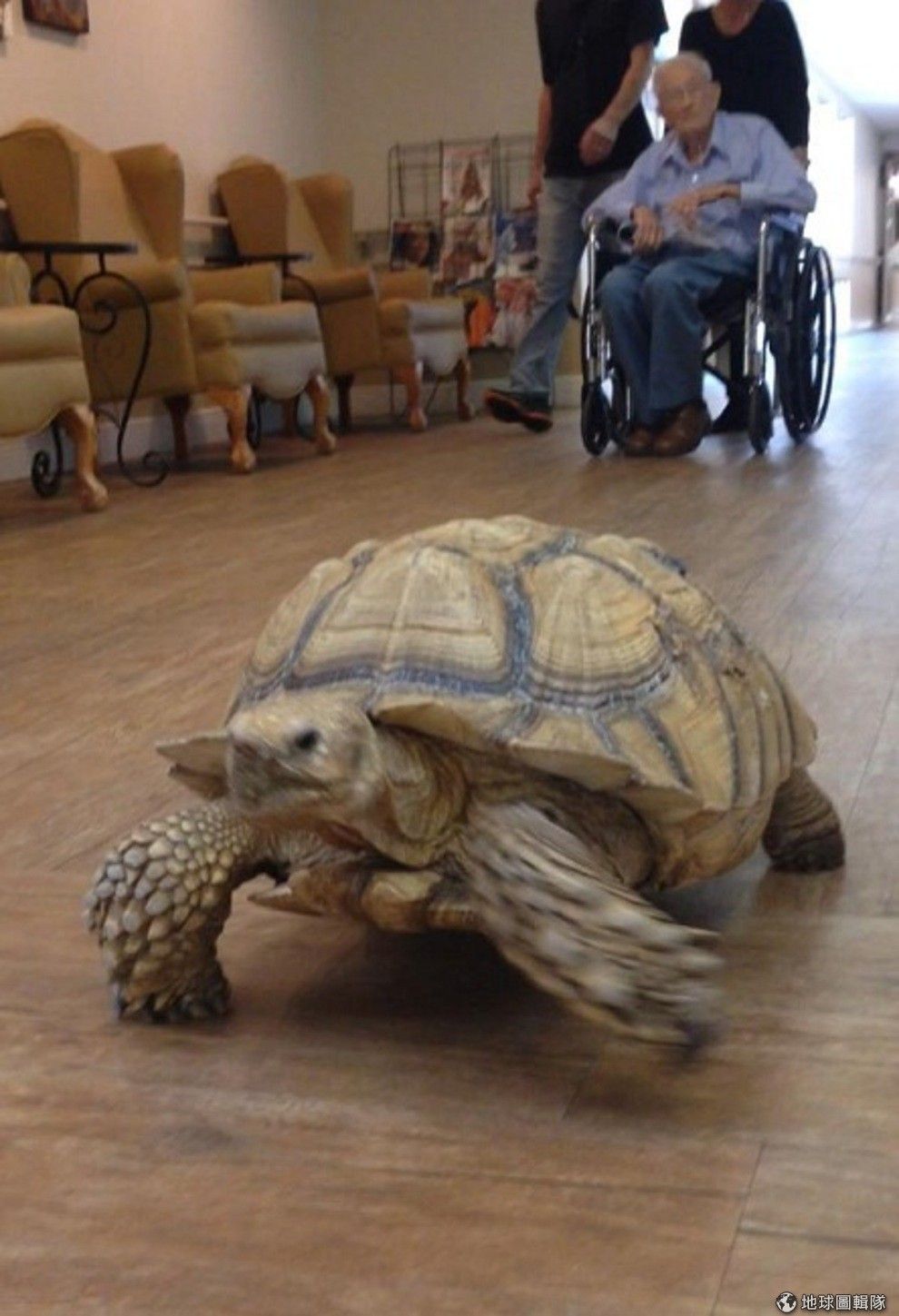 20歲的蘇卡達陸龜謝力是佛羅里達州一家安養中心的「龜醫生」,極富療癒功能。 取自網路