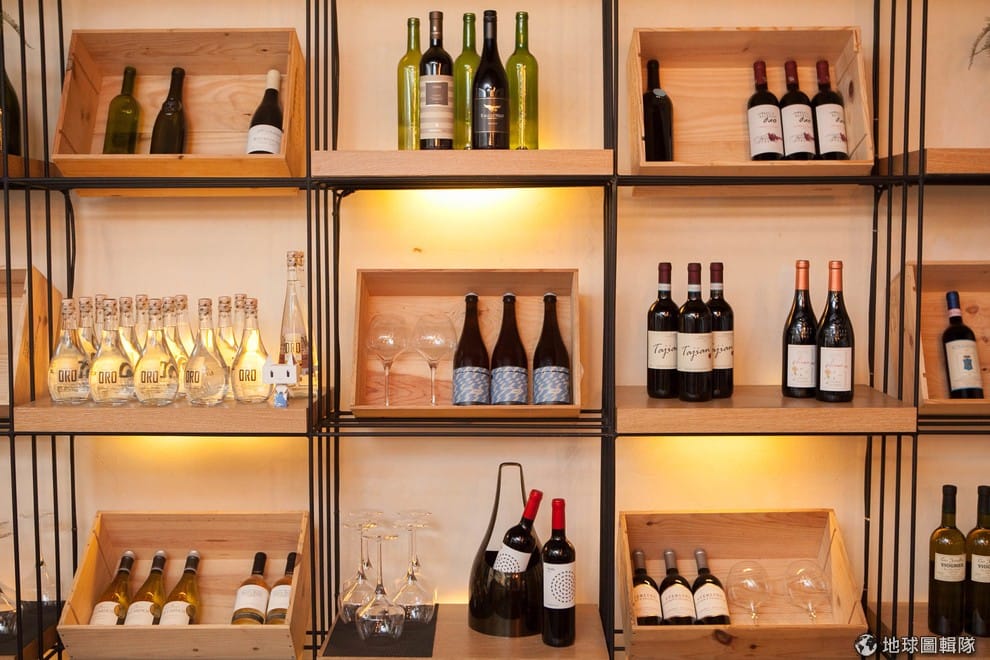 Pico Pico的酒櫃上展示著從世界各地飄洋過海的酒,大家趕快來找找空空在哪裡?