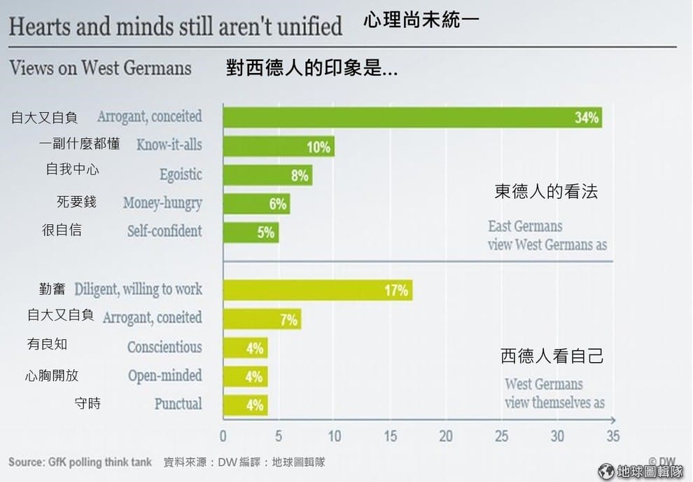 從調查可以知道東德和西德民眾對彼此的印象仍有些落差。