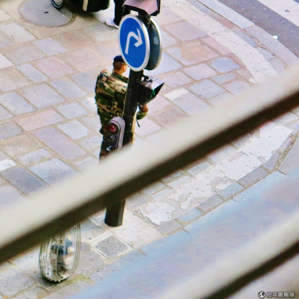 民眾在巴黎街頭拍下士兵身影,法國因為 1月份的《查理周刊》屠殺案陷入恐怖威脅陰影。Photo credit: Martin Pulaski