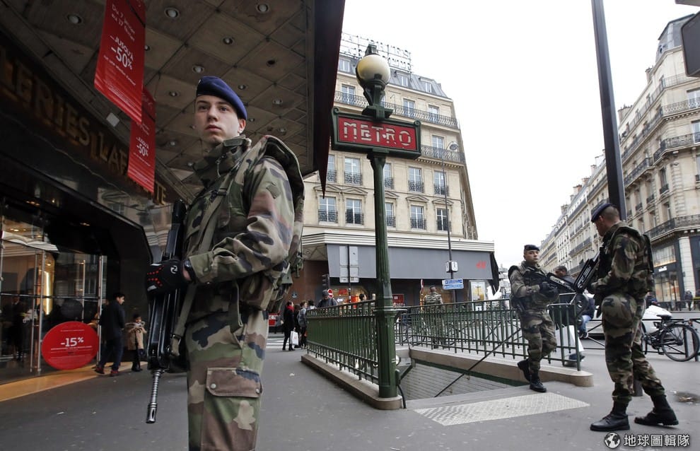 路透社正在巴黎街頭的維安士兵。