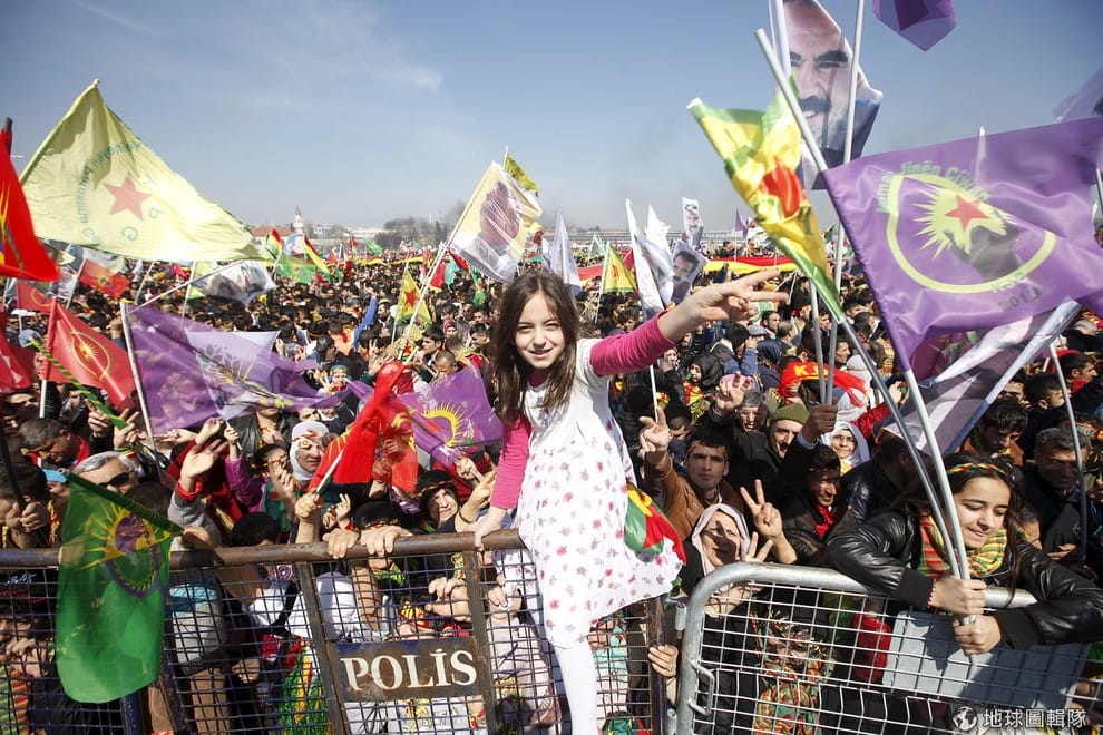 土耳其境內的庫德人揮舞著代表庫德族的旗幟,歡慶春天的到來。
