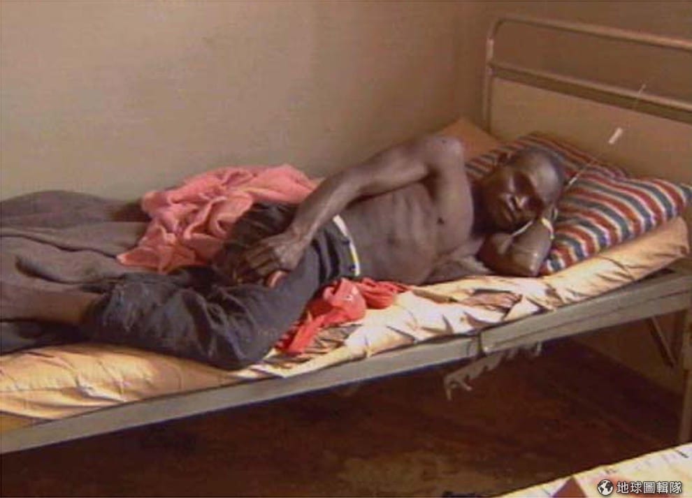 感染到伊波拉病毒的患者虛弱地躺在床上。