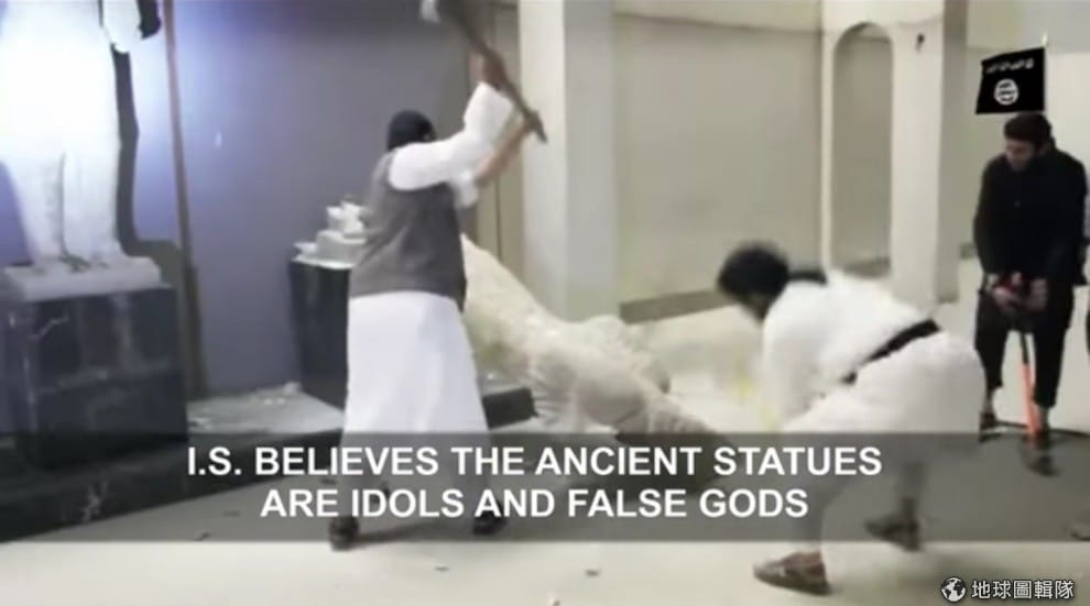 伊拉克戰事過去,接著又是伊斯蘭國的入侵,今年 7月時,敘利亞古城帕米拉(Palmyra)遭到占領後,就陸續傳出許多古蹟遭到破壞的消息,其中包括 2,000年前的石獅像,BBC報導的影片中也可以見到許多雕像被鐵鎚直接敲成碎塊。