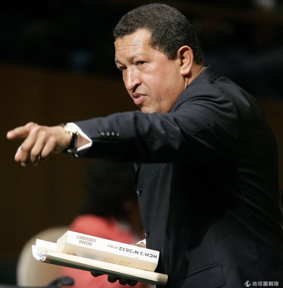 圖為委內瑞拉已故總統查維茲,他在上任後想救貧力行社會主義,這也衝擊了委內瑞拉的經濟結構。