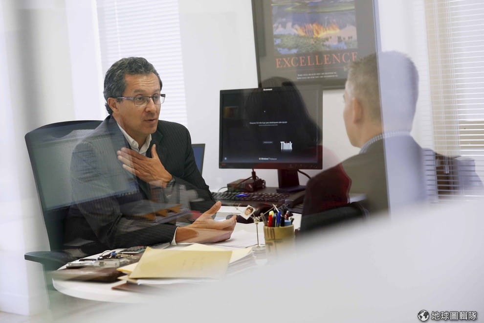獵人頭公司光輝國際的負責人拉克魯茲(圖左)正在與面試者談話。