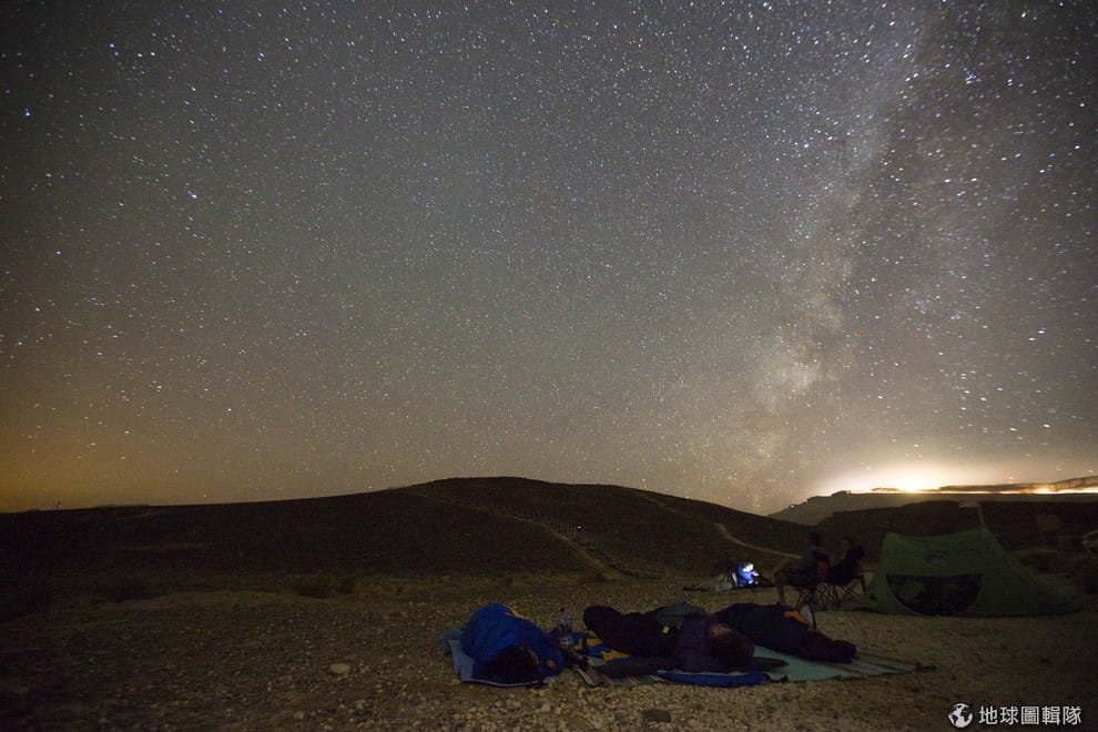 以色列-著名的米茨佩拉蒙當地,民眾在拉蒙地坑(Ramon Crater)旁欣賞流星雨美景。