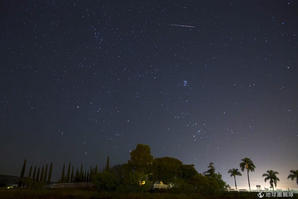 美國加州-拉莫那(Ramona)區可以見到流星從左方劃過。
